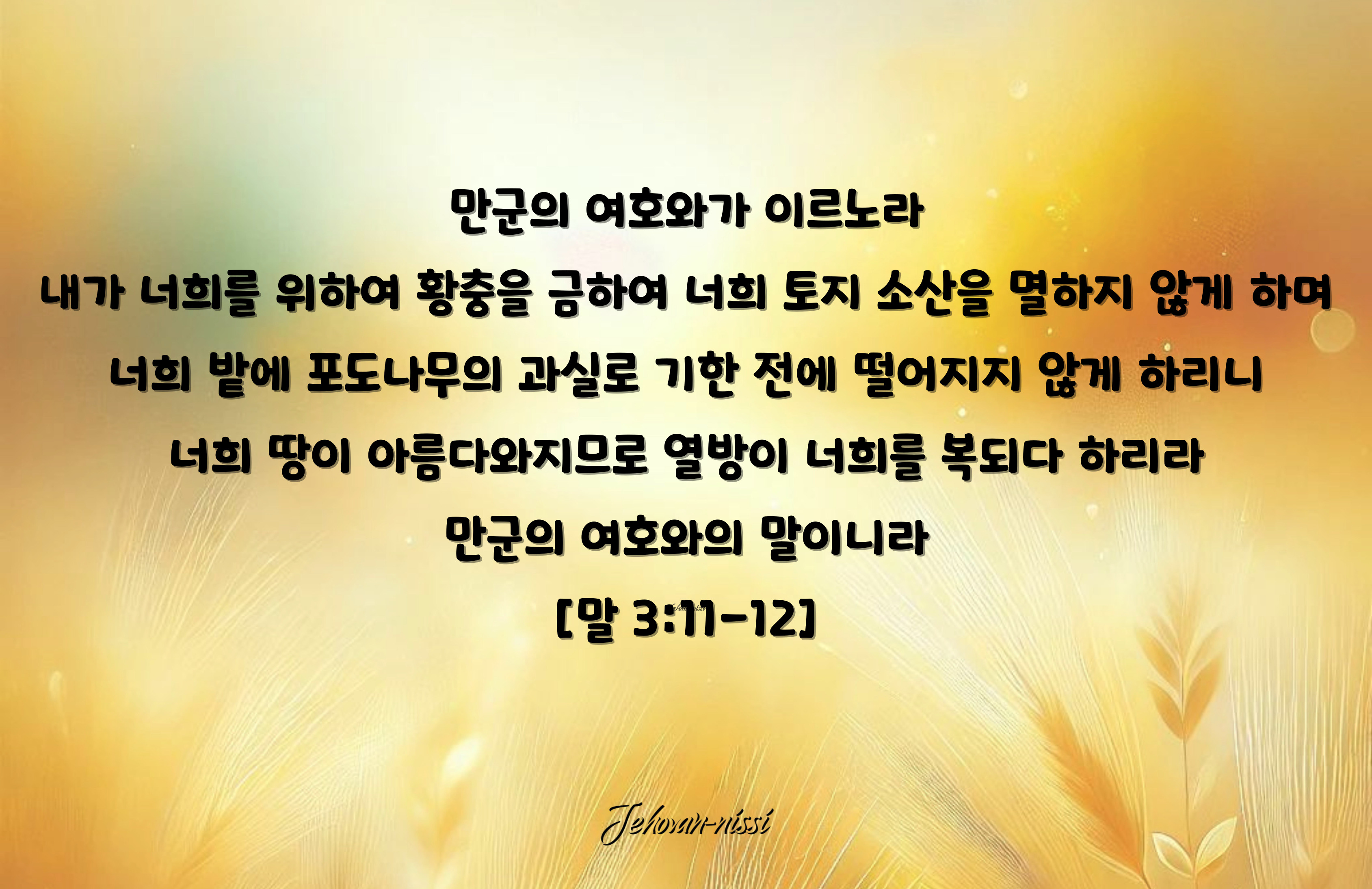 하나님께 정성껏 헌금을 하는 자에게는 너희 땅이 아름다워지고 열방이 우리를 복되도다 하며 부러워한다고 말합니다.